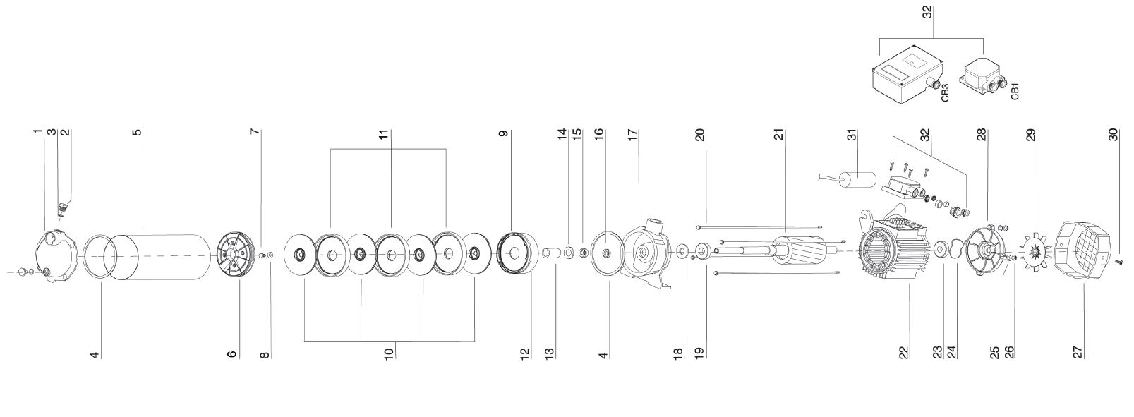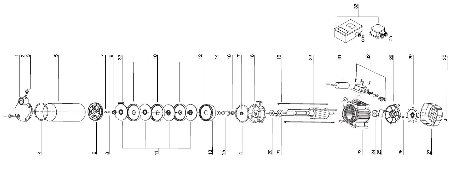 Sie finden Ersatzteile wie: Kondensator, Gleitringdichtung, Luftabscheider, Leitrad, Lüfterrad, Deckel für Lüfterrad, Buchse, O-Ring, Laufradkern, Klemmkasten, O-Ring, Dichtring, Einfüllstopfen,  Lüfterdeckel, Lüfterrad, Manteldichtung, Laufradschraube, Unterlegscheibe, Buchse für Laufrad, Pumpenmantel, Druckgehäuse, Gewindestange, Zuganker, Welle, Motor, Stator, Klemmkasten CB1, Klemmkasten CB3, Klixon für Aspri, Kondensator, passend für Klemmkasten CB3, Sauggehäuse, Lippen Dichtring, Lippendichtung, Lager, Rillenkugellager, Aluminium Lagerdeckel.